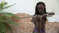 Promotional image of Danai Gurira, who makes her entrance in the television series as the comic book character Michonne.