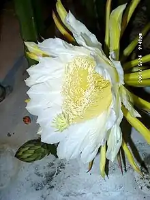 Selenicereus costaricensis, synonym Hylocereus costaricensis, known as the Costa Rican pitahaya or Costa Rica nightblooming cactus, is a cactus species native to Central America and north-eastern South America.[1] The species is grown commercially for its fruit, called pitaya or pitahaya, but is also an impressive ornamental vine with huge flowers. The species may not be distinct from Selenicereus monacanthus.
