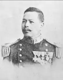 In December 1898, he assumed the post of Military Construction Supervisor and successively served as vice-commander of the Suma , Naniwa and Yakumo. He then took up the role of a marine artillery instructor, marine inspector general, Kure Naval Base outfitting committee, etc. on 1903. In October, he assumed the post of captain of Tsushima. She took part in the Battle of Korsakov and the Battle of Tsushima. In January 1905, he was promoted to captain. In August of the same year, he assumed the post of captain of Naniwa, and thereafter served as captain of the Kasuga, Yakumo, Suwo, and Suzuya. In May 1908, he became Commander of the Kaiheidan and successively served as Commander of the Naval Gunnery School and Commander of the Kure Marine Corps.[1]