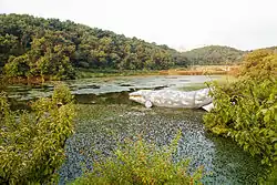 Seonam Lake Park is an urban park next to Hamwolsan in Seonam-dong, Nam-gu, Ulsan, South Korea. The park was previously named Sunam Dam Park (선암댐공원) because of the large C-shaped dammed lake in the center of the park. There are approximately 4 kilometres (2.5 miles) of walking trails around the lake, a rose garden, a lotus pond, a soccer field, tennis courts, and a survival game field. It takes approximately one hour to walk the trails around the lake. There are additional trails that wind through the mountains that surround the lake. One such trail leads to 3 miniature places of worship, including the 1.8-meter tall "An min temple", the 1.8 m tall "Lake Church", and the 1.5 m tall replica of St. Peter's Basilica.[1]