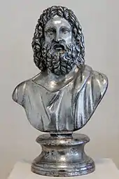 Papyri document the celebration of the Egyptian Serapia along the Nile as late as 315. One records payments to those performing in the ceremonies at Oxyrhynchus during the late 3rd century,[4] including a comedian, two "Homerists", dancers, and athletes.[5] A "dog-headed one" (kynopou) may be a priest wearing a mask of Anubis. Processions for Egyptian deities at Rome seem to have included masked participants.[6] Among the Greeks and Romans, Serapis was sometimes identified with the underworld ruler Pluto, and Anubis with Cerberus.[7] In addition to his payment from the festival organizers, the kynopou was to receive welcome gifts (xenia) from people along the processional route, perhaps to obtain reciprocal hospitality in the afterlife. For Egyptian observers, the presence of Anubis would have affirmed the connection of the Hellenistic Serapis to the traditional Egyptian god Osiris.[8]