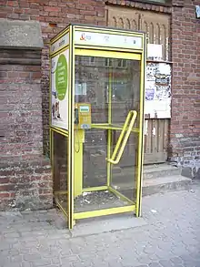 ![]() The phoneboth, with Serce i Rozum commercial on its side. | |