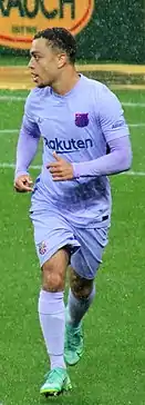 On October 1, 2020, Dest transferred to Barcelona for an initial €21 million fee plus a further €5 million in variables. He signed a five-year contract with the club with a buyout clause set at €400 million.[7] Dest made his debut for Barcelona on October 4, coming on as a 75th minute substitute for Jordi Alba in a 1–1 draw against Sevilla.[14] With the appearance, Dest became the first American to appear for Barcelona in La Liga.[15] On October 20, he became the first American to play for Barcelona in a UEFA Champions League match.[16] Later that month, Dest set another milestone, becoming the first American to play in El Clásico; Barcelona fell to a 1–3 defeat to rivals Real Madrid but Dest's performance in the match was praised.[17] On November 25, 2020, Dest scored his first goal for Barcelona in a 4–0 away win over Dynamo Kyiv in the Champions League group stage.[18] In doing so, Dest became the first American to score a professional goal for the club.[19] On March 21, 2021, he scored a brace in a 6–1 away win over Real Sociedad.[20]