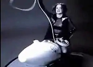The bomb-riding and lasso-waving scene from the 'Rocket O' Love' music video