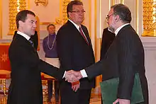 Seyed Mahmoud-Reza Sajjadi presenting his credentials to Dmitry Medvedev in January 2009.