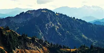 Seymour Peak is a 6,337-foot-elevation (1,932 meter) mountain summit located in Mount Rainier National Park in Pierce County of Washington state.[3] It is part of the Cascade Range and is situated southeast of Cayuse Pass and northeast of Shriner Peak. Its nearest higher neighbor is Dewey Peak, 0.79 mi (1.27 km) to the east.[1] Seymour Peak is named for William Wolcott Seymour (1861-1929), mayor of Tacoma, Washington, from 1911 to 1914. He was also a philanthropist, mountaineer, and a contributor to the scouting movement.[4] This landform's name was officially adopted in 1932 by the U.S. Board on Geographic Names.[3] Precipitation runoff from Seymour Peak drains into tributaries of the Cowlitz River.