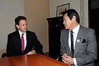 Shōichi Nakagawa (中川 昭一, Nakagawa Shōichi, 19 July 1953 – 3 October 2009) was a Japanese conservative politician in the Liberal Democratic Party (LDP), who served as Minister of Finance from 24 September 2008 to 17 February 2009. He previously held the posts of Minister of Economy, Trade and Industry and Ministry of Agriculture, Forestry and Fisheries in the cabinet of Junichiro Koizumi. He was regarded as one of Japan's most attractive public figures.[1] On 4 October 2009, he was found dead in his Tokyo apartment. The cause of his death is yet to be determined; although no suicide note was found, there was also no indication of foul play.[2]