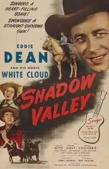 Shadow Valley is a 1947 American western film directed by Ray Taylor and starring Eddie Dean, Roscoe Ates and Jennifer Holt.[1] It was made as a second feature by the independent Producers Releasing Corporation. It was shot at the Iverson Ranch in California.