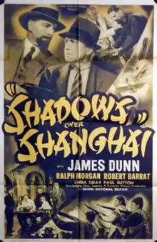 Shadows Over Shanghai is a 1938 American drama film directed by Charles Lamont and starring James Dunn, Ralph Morgan, Robert Barrat, and Paul Sutton. Set in Shanghai during the Second Sino-Japanese War, the plot centers on the efforts of Japanese and Russian espionage agents to get their hands on an amulet which is the key to a $5 million fund meant to help China purchase munitions. Footage from the bombing of Shanghai during the 1937–1945 war was incorporated into several scenes.