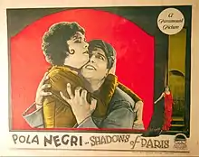 Shadows of Paris is a 1924 American silent drama film directed by Herbert Brenon and starring Pola Negri, Charles de Rochefort, and Huntley Gordon. The screenplay involves a young woman who rises from an apache dancer to become a wealthy woman in post-World War I Paris.[1] It was based on the play Mon Homme by Francis Carco and André Picard.