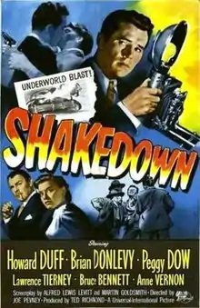 Shakedown is a 1950 American crime film noir directed by Joseph Pevney and starring Howard Duff, Brian Donlevy, Peggy Dow, Lawrence Tierney, Bruce Bennett and Anne Vernon.[1]