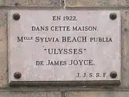 The store functioned as a lending library as well as a bookstore.[3] In 1921, Beach moved it to a larger location at 12 rue de l'Odéon, where it remained until 1941.[1] During this period, the store was the center of Anglo-American literary culture and modernism in Paris. Writers and artists of the Lost Generation, such as Ernest Hemingway[6] and F. Scott Fitzgerald, as well as Ezra Pound, Gertrude Stein, George Antheil, Djuna Barnes, Mina Loy, and Man Ray, among others, spent a great deal of time there.