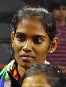 Shamini Kumaresan (Tamil: ஷாமினி குமரேசன்; born 1988) is a professional table tennis player from Tamil Nadu, India. She did her schooling from Atomic Energy Central School Kalpakkam and Adarsh Vidyalaya, Chennai. She led the women's team which won the silver in the 19th Commonwealth table tennis championship held at Delhi in 2010.[1] She is currently playing in the Bundesliga of Germany for the club TuS Bad Driburg.