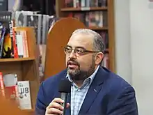 ![]() Khan speaks at Politics & Prose in Washington, D.C., in January 2020 | |