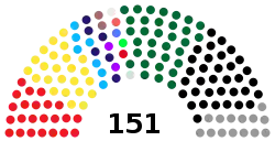 | Party | Seats | Net Gain/Loss | Seats % | Votes % | Votes | +/- |