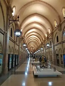 Displays along the central boulevard include cases of Islamic coins as well as clocks and other items.