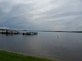 Shawano Lake (/ˈʃɔːn/ SHAW-noh)[1] is a lake situated in Shawano County in northeastern Wisconsin. Shawano Lake is a hard water drainage lake with multiple inlets and one major outlet, the Wolf River. A dam on the Wolf River located in the City of Shawano raises the water levels of Shawano Lake. Shawano Lake is approximately 6,178 acres (25.00 km2), with an average depth of approximately 9 feet (2.7 m) and a maximum depth of approximately 42 feet (13 m). The shoreline length is estimated at 18 miles (29 km).[2] The Towns of Wescott, and Washington, and the Village of Cecil border Shawano Lake.
