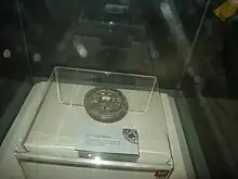 During the later part of the Taiping Rebellion, the government of the Taiping Heavenly Kingdom cast a small number of vault protector coins with the inscription Taiping Tianguo (太平天囯), these cash coins were notably 7.6 centimeters in diameter and were also very thick.[12][13] The reverse sides of these vault protector coins contained the characters Shengbao (聖寶, "holy treasure").[12] In his book "Coins of the Taiping Heavenly Kingdom" (太平天國錢幣), Chinese numismatist Ma Dingxiang (馬定祥) notes that the vault protector coins of the Taiping Heavenly Kingdom were manufactured in Hangzhou, Hunan, and Suzhou.[12] There are only 5 or 6 of Taiping Heavenly Kingdom-made vault protector coins known to exist and these coins all tend to display some very slight differences between them.[12]