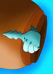 Shenzianyuloma is an extinct genus of vetulicolians, represented by a single species, Shenzianyuloma yunnanense, from the Maotianshan Shale during Stage 3 (518 million years ago) of the Cambrian period. It is notable for having a compact body shape akin to that of an angelfish.