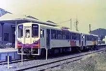 - ↑ 小川勝也; 和野康宏 (December 13, 2014). 赤字・大事故・豪雨被害、それでも立ち上がった"幸運な鉄道"…住民らが支えた苦難の80年 [Despite Deficit, Disaster, Flood the Lucky Railway Rises—Residents Supported 80 Years of Hardship]. Sankei West. Retrieved December 14, 2014.