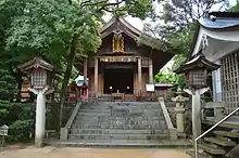 The Azumi people, who inhabited Kyushu, traditionally followed the sea deity, Watatsumi.[4] Shikaumi Shrine is considered this deity's ancestral shrine, and also honors Watatsumi[5] and Azumi-no-isora.[6]