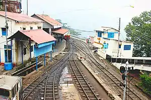 Shimla railway station is a small railway station in Shimla in the Indian state of Himachal Pradesh. The station is the terminus of the UNESCO World Heritage Site Kalka–Shimla Railway. Shimla railway station is located at an altitude of 2,075 metres (6,808 ft) above mean sea level.[1] It was allotted the railway code of SML under the jurisdiction of Ambala railway division. The 762 mm (2 ft 6 in)-wide narrow-gauge Kalka-Shimla Railway was constructed by Delhi–Ambala–Kalka Railway Company and opened for traffic in 1903.[2]