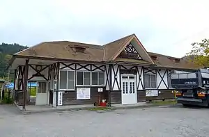 - ↑ The walk brings from this bus stop to Oiwake bus stop at 25 minutes for 2km. Are able to transfer onto route bus of Fukushima Transportation bound for Higashidate Station at Oiwake bus stop.