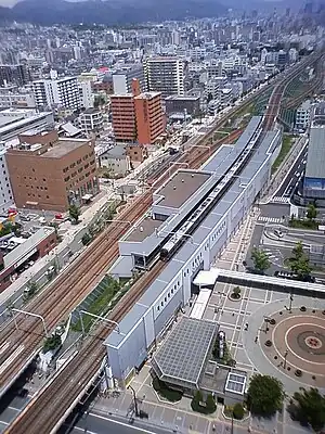 | Platforms | 2 side platforms (JR West) 1 island platform (Seishin-Yamate Line) 1 island platform (Kaigan Line) | |||||||||||||||