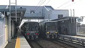 Shin-Toyamaguchi Station has 2 side platforms connected by a footbridge. The station is unstaffed.