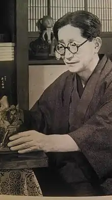 Shinobu Orikuchi (折口 信夫, Orikuchi Shinobu, 11 February 1887–3 September 1953), also known as Chōkū Shaku (釋 迢空, Shaku Chōkū), was a Japanese ethnologist, linguist, folklorist, novelist, and poet. As a disciple of Kunio Yanagita, he established an original academic field named "Orikuchiism" (折口学, Orikuchigaku), which is a mixture of Japanese folklore, Japanese classics, and Shintō. He produced many works in a diversity of fields covering the history of literature, folkloric performing arts, folklore itself, Japanese language, the classics study, Shintōology, ancient study, and so on. Yukio Mishima once called him the "Japanese Walter Pater".