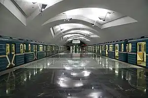 The main architect was Vadim Volovich of Metrogiprotans. In terms of structure, it is a shallow single-vault station with one island platform and two tracks.