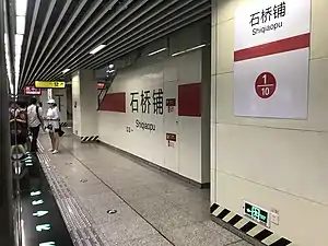 Shiqiaopu is a station in Chongqing Municipality, China.[1][2] This station began service in 2011 with the opening of Line 1 and turned into an interchange station in 2021 with the opening of Line 5 Southern section. Currently, due to the Central section of Line 5 is still under construction, all local trains of Line 5 Southern section terminate here. It is located in Jiulongpo District.