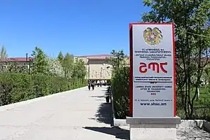 Shirak State University has its own emblem as well as an anthem written by Sonik Khachatryan and composed by Robert Amirkhanyan.[3] The university complex is located on Paruyr Sevak Street of Ani district at the northwestern suburbs of Gyumri.