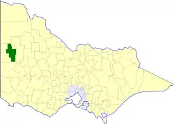 The Shire of Lowan was a local government area in the Wimmera region of western Victoria, Australia. The shire covered an area of 2,861 square kilometres (1,104.6 sq mi), and existed from 1875 until 1995.