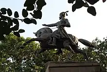 The statue of Chatrapati Shivaji, found on the western side of the park is one of the very few statues in which he is depicted without having drawn out his sword. Instead, Chatrapati Shivaji Maharaj is shown simply leading the way with his arm outstretched. Sculpted in 1966 using donations from the local population, the statue is a rare example of the pacifist policies of the then state government of Maharashtra. It was considered a sensitive issue by the government to let this statue not depict the usual confrontational posture of Chatrapati Shivaji Maharaj, who had fought many battles against the Mughal Empire.