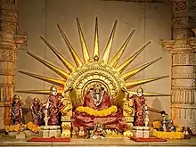 The most prominent entrance to the park is the one on the east side, intended only for pedestrians. A bust of Meenatai Thackeray, late wife of Shiv Sena leader Bal Thackeray, has been placed at this entrance. Previously a bust of Ram Ganesh Gadkari was present at the same spot. Bal Thackeray himself was cremated here.[3][4][5]