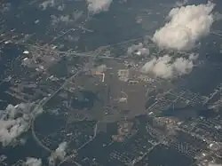 Shreveport Regional Airport covers an area of 1,625 acres (658 ha) at an elevation of 258 feet (79 m) above mean sea level. It has two asphalt paved runways: 14/32 is 8,348 by 200 feet (2,544 x 61 m) and 6/24 is 7,002 by 150 feet (2,134 × 46 m).[1][10] The airport is located off Hollywood Avenue with access to Interstate 20. Shreveport Public Works Commissioner H. Lane Mitchell was a major figure in campaigning to have the airport located on Hollywood Ave.[11]