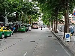 The road ran from the area of Captain Bush Lane (also later known as "Si Phraya Pier", after the road), near the mouth of Phadung Krung Kasem Canal where the Hongkong and Shanghai Bank was located, to Wat Hua Lamphong, which is now on the corner of Sam Yan intersection. The United Club had been located on its corner with Charoen Krung since the 1880s, and the intersection soon became a fashionable European shopping centre. The road was home to members of the upper class, high-ranking officials, and Western expatriates.[1][2] Some historic buildings still stand along the road and its side streets, including 1 Naret Road, the residence of the Balankura family, which is an unregistered ancient monument.[3]