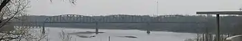 The Sibley Railroad Bridge is a three-span through truss single-track railroad bridge belonging to the BNSF Railway between Jackson County, Missouri, and Ray County, Missouri, at Sibley. The bridge carries the BNSF Marceline Subdivision over the Missouri River. It is the only single-track segment of the subdivision. The original 1887–88 bridge was a three-span Whipple through truss and was later reconstructed with Parker through truss spans. Besides the freight trains of BNSF Railway, it is also used by Amtrak's Southwest Chief.