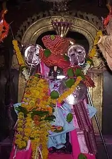 Siddhanath Temple, located in Mhaswad, is dedicated to the veneration of Lord Siddhanath. Siddhanath is believed to be incarnation of Shiva (one of the principle deities of Hinduism) and the patron god of adjacent regions and one of among several regional protective (Kshetrapal) gods of Maharashtra. Mhaswad is situated in the bank of Manganga river.