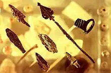 Other artifacts found here were glass perfume bottles and half of a glass bracelet; a spindle for spinning fine cotton thread; an ivory pen and inkwell; a 2,600-year-old arrowhead from the Babylon Period. A rhyton discovered here was made out of a glass in the shape of a horn of plenty – only seven rhyton’s like this have been found in the whole ancient world.
