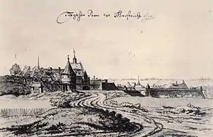 Between 1645 and 1672, the fortifications had been completely neglected, falling into disrepair. They largely consisted of earthworks that were susceptible to erosion. Makeshift repairs in 1672 and 1673 had only partly improved the situation. Wooden palisades were constructed to reinforce weak spots. A lunette had been added in front of the vulnerable Tongeren Gate.[14]