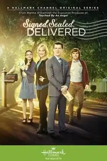 Signed, Sealed, Delivered (original title: Dead Letters[1]), also known as Lost Letter Mysteries,[2] is a drama/romantic comedy television series that aired on the Hallmark Channel in 2014 from April 20 through June 22.[3] Created by Touched by an Angel's Martha Williamson, Signed, Sealed, Delivered focuses on four dedicated United States Postal Service employees who work in the Dead Letter Office. They take it upon themselves to track down intended recipients of undeliverable mail.[3] Similarly to her previous program, the show promotes Williamson's Christian beliefs as the characters struggle with their faith, or lack of it, as one character is agnostic, while relying on divine intervention to accomplish their task.[4] It is set in Denver, Colorado but filmed mostly in the Vancouver area. On October 12, 2013, a two-hour pilot movie aired on Hallmark and was a ratings success. It was the number-one television movie on its airdate and the number-two movie for that week.[5] The movie was watched by 1.72 million viewers.[6] Following one season of the TV series, Hallmark announced Signed, Sealed, Delivered would transition to a series of television films on its Hallmark Movies & Mysteries channel.[7]