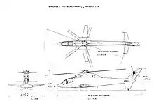 The United States Army issued a request for proposals (RFP) for its Advanced Aerial Fire Support System (AAFSS) program on 1 August 1964.[1] Lockheed offered its CL-840 design, a rigid-rotor compound helicopter.[2] Sikorsky submitted the S-66, which featured a "Rotorprop" serving as a tail rotor but as speeds increased would rotate 90° to act as pusher prop.[3] The S-66 had short, fixed wings and was powered by a 3,400 shp (2,500 kW) Lycoming T55 turboshaft engine. The design was to have a speed of 200 knots (370 km/h) with the ability for 250 knots (460 km/h) for brief periods.[4]