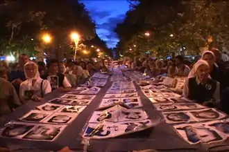 In her feature documentary, Burnt Oranges (2005)[33]—completed over roughly seven years—Malagrino returned to her native Argentina after three decades to re-map the obscured story and repercussions of the Dirty War, examining the subjectivity of history and the gap between personal memory and official "fact."[4][5][6] Critic Janina Ciezadlo likened the film's experimental style to that of Chris Marker and Agnès Varda in its interweaving of metaphor, poetic narrative (based on letters written by herself and writer Monica Flores Correa, who collaborated on the film's script), interviews with torture survivors, families of "the disappeared," journalists and junta officers, and documentary and re-created footage.[4][34][5][11] Reviewers noted the film's simultaneous depiction of the social catastrophe of state terror and affirmation of human perseverance, human rights and dignity, democratic values and accountability, represented in part by a coalition of women, youth and human rights organizations, such as Mothers of the Disappeared and HIJOS, who sought to reclaim their society.[35][4][36][5] Burnt Oranges won the CINE Golden Eagle Award (2005) and Aurora Awards for Directing and Best of Show (Platinum) for Cultural Documentary (2007).[1][6]