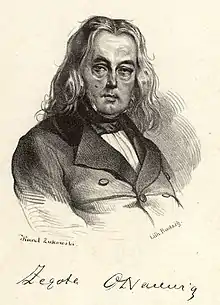 Simonas Daukantas (Polish: Szymon Dowkont; 28 October 1793 – 6 December 1864) was a Lithuanian/Samogitian historian, writer, and ethnographer. One of the pioneers of the Lithuanian National Revival, he is credited as the author of the first book on the history of Lithuania written in the Lithuanian language. Only a few of his works were published during his lifetime and he died in obscurity. However, his works were rediscovered during the later stages of the National Revival. His views reflected the three major trends of the 19th century: romanticism, nationalism, and liberalism.[1]