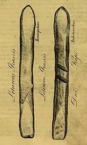 From his own experience, Daukantas understood that Lithuanian students struggled learning Latin because they had to use Polish textbooks and many Lithuanians did not speak Polish before entering school.[160] Therefore, in 1837, he published a 120-page grammar book on Latin. It started with a basic introduction to the Lithuanian grammar on which then Latin grammar rules were built on. Thus, at the same time, it was one of the first textbooks of Lithuanian grammar.[161] In 1838, Daukantas published Epitome historiae sacrae by the French author Charles François Lhomond[161] and added a 42-page Latin–Lithuanian dictionary with about 2,350 Latin words and 250 word combinations[148] and 3,880 Lithuanian words and 260 word combinations.[162] The book was meant as a supplemental Latin reading for school students.[161] It was a popular work that was frequently published with a dictionary. Daukantas did not compile the Latin list of words, but translated it from a Polish edition.[163]