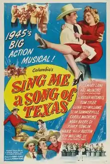 Sing Me a Song of Texas is a 1945 American Western film directed by Vernon Keays and written by J. Benton Cheney and Elizabeth Beecher. The film stars Rosemary Lane, Tom Tyler, Guinn "Big Boy" Williams, Slim Summerville, Carole Mathews, Noah Beery Sr., Pinky Tomlin and Marie Austin. The film was released on February 8, 1945, by Columbia Pictures.[1][2][3] The film features Noah Beery Sr.'s final role in a motion picture.
