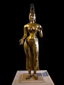 According to legend, a princess Suppadevi of Vanga was abducted by a lion, with whom she then bore a daughter called Sinhasivali, and a son, Sinhabahu.[26][27] On the origin of Sinhala, Mahāvaṃsa says: "By whatever means; the monarch Síha Báhu slew the 'Síha' (lion), from that feat his sons and descendants are called 'Síhala' (the lion-slayers)." By this account, Sri Lanka conquered and colonised by his descendants therefore also came to be associated with 'Sinhala'.[25][27]