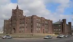By 1911 the building had become too small. The north wing was completed in 1912 for $225,000, and it was designed to complement the original building. The stone was purposely smoked to match the older stone.[4] The school received the name Central High School in 1924 when other schools were built. The building was expanded again in 1930 when the hipped roof was removed and the fourth floor was added. The whole interior of the building was also remodeled at that time. The final expansion was the brick annex that was built to the south of the main building. Central High School was closed in 1972 when three new high schools were built in the city.